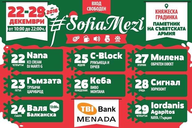 Уникални скари и чевермета от прясно месо, както и гигантска коледна баница са допълнителен магнит за посетителите на фестивала, който ще се състои от 22-ри до 29-ти декември и ще е с вход свободен. По време на събитието организаторите ще подкрепят и няколко благотворителни каузи, като една от каузите е да дарят храна на Кризисен център за бездомни в „Захарна фабрика" на 25 декември.