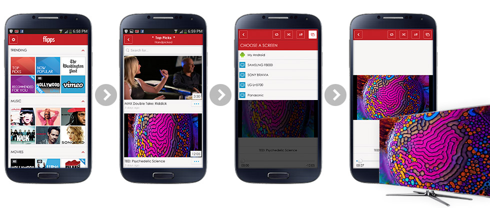 Всъщност Flipps представлява мобилно приложение, което превръща телефона в своеобразно дистанционно управление на умните телевизори от ново поколение. То позволява на iPhone и на Android потребителите да управляват телевизорите си и да възпроизвеждат на тях видеосъдържание от интернет, без за това да им трябват допълнителни кабели или "кутии с техника", т.е. хардуер. Така потребителите могат да генерират свое собствено съдържание на по-големия екран у дома.