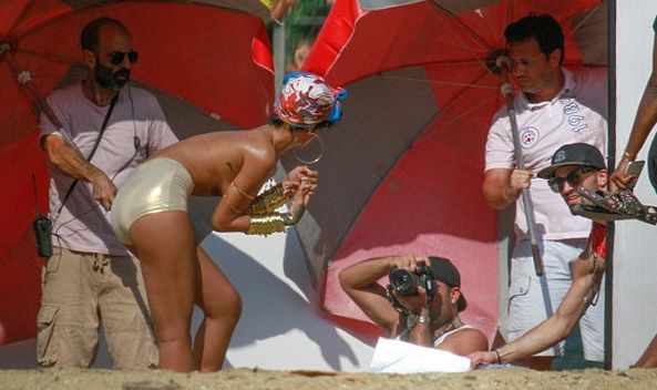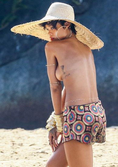 Въпреки, че барбадоската красавица не прекара много време по монокини, ловки папараци успяха да направят своя фотосесия с голата красавица.