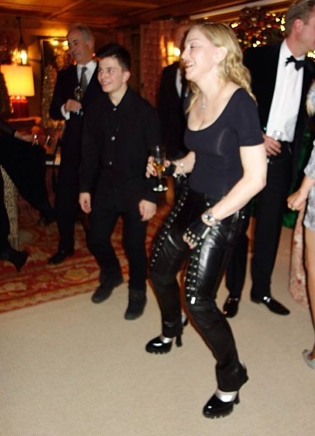 Снимката е направена по време на коледно парти в един от планинските курорти в Швейцария. На фотоса Мадона е прегърнала младото си гадже.