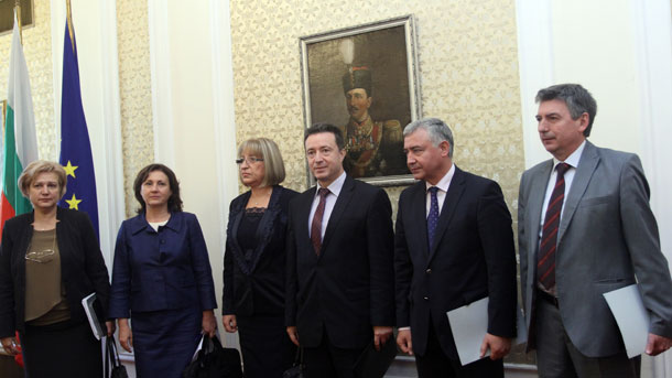 Срещу дамското трио на ГЕРБ - Цецка Цачева, Румяна Бъчварова, Менда Стоянова - в понеделник, първия ден от седмицата на политически консултации, се изправиха социалистите Атанас Мерджанов, Янаки Стоилов и Захари Георгиев. Макар че разговорите им продължиха повече от 4 часа, двете страни не успяха да постигнат договорености по всички свои приоритети. Преговорите приключиха с отчитането на сериозните различия в ключови области, поради което социалистите няма как да влязат в планираното от партията на Бойко Борисов коалиционно правителство, но биха му осигурили подкрепа за други важни закони и решения, по които има съгласие.