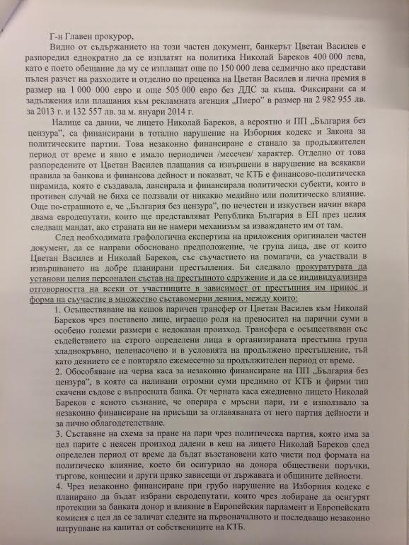 Председателят на ББЦ обяви, че ще съди Янев за клевета и призова същото да стори и Красимир Гергов. На пресконференция вчера лидерът на РЗС показа два хвърчащи листа без каквито и да били доказателства (на снимките по-долу) и обяви, че е внесъл сигнал във Върховната касационна прокуратура. На нея той обяви, че свързаната с Красимир Гергов фирма за реклама "Пиеро" е трансферирала над 4 700 000 лева към Николай Бареков.