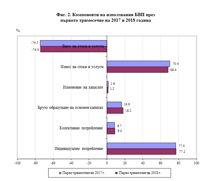 Днешните предварителни данни на НСИ показват подобряване на икономическия възходящ импулс в началото на годината спрямо края на 2017-а година. Въпреки това предварителната оценка на НСИ за първото тримесечие на настоящата година, показваща растеж на БВП с 3,6% годишна база, е малко по-слаба от "пролетната" средносрочна прогноза на Министерството на финансите, според която икономиката на нашата страна се очаква да нарасне с 3,9% през 2018-а година след по-слабия от прогнозите растеж с 3,6% през предходната година.