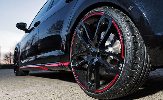 Abt поставя пълен бодикит - предният спойлер, радиаторната решетка, задната престилка, стоповете и капаците на огледалата са или модифицирани, или изработени изцяло от карбон.