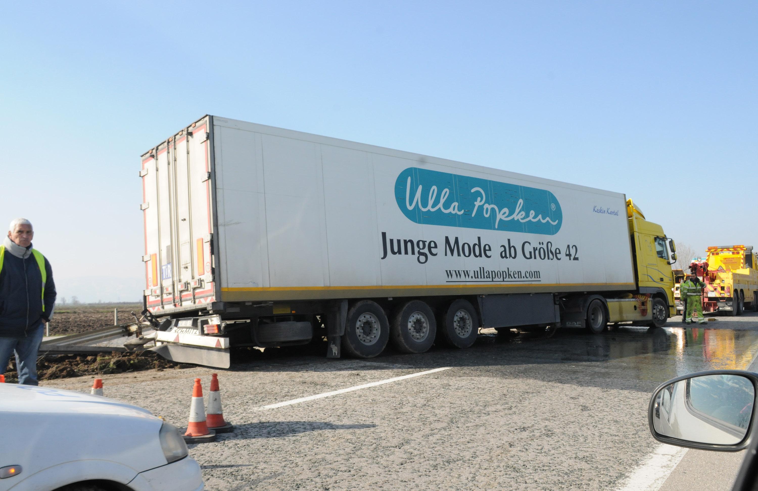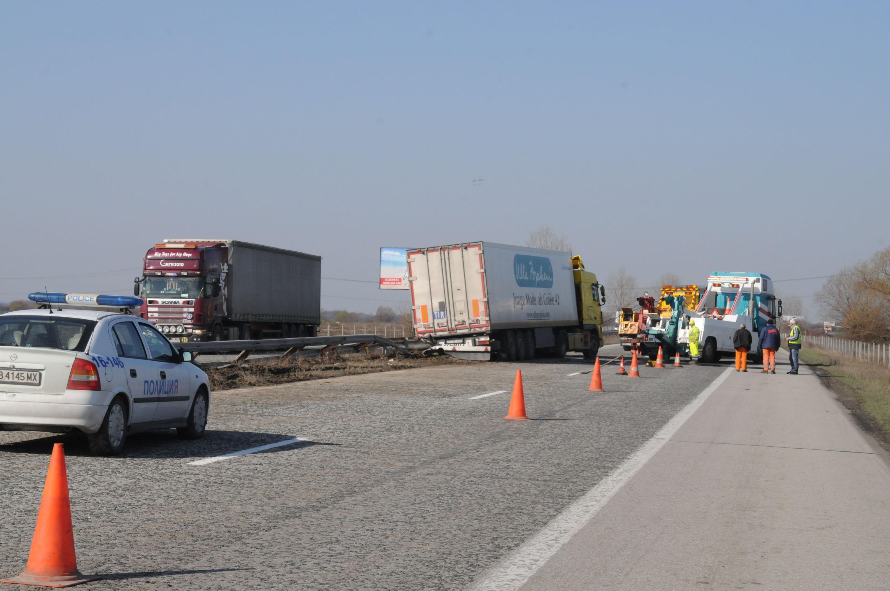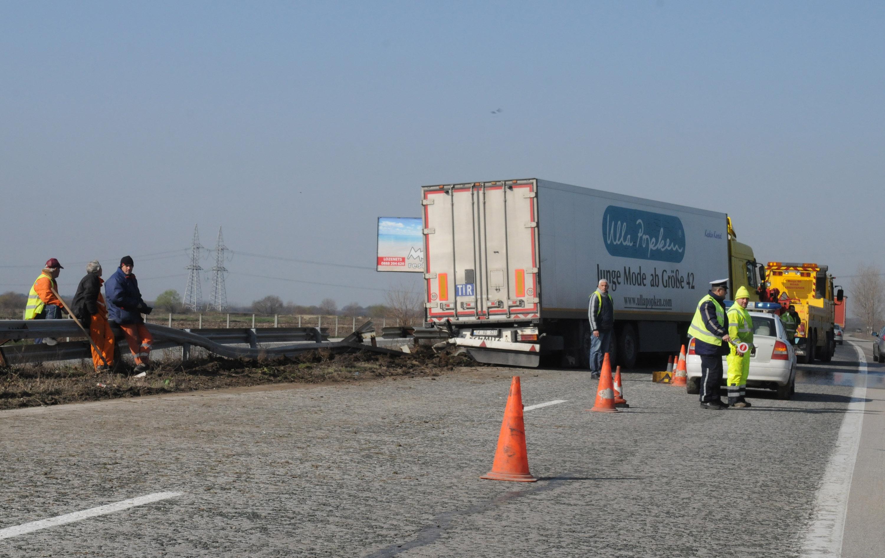 ТИР катастрофира на "Тракия", разлив на гориво блокира трафика