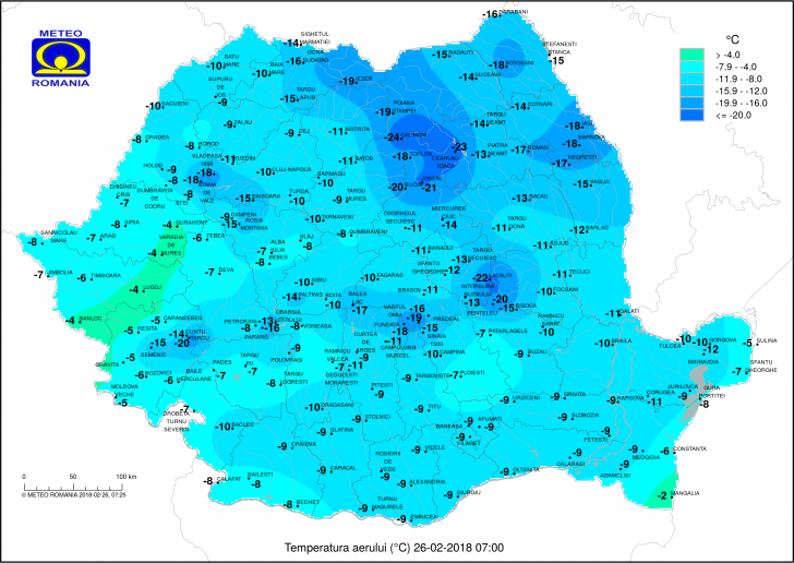 /КРОСС/ Арктически студ обхвана Румъния през днес и през изминалото денонощие. В 7 часа тази сутрин в най-северните части и в североизточни части на страната бе регистрирана смразяващата температура от минус 49 градуса по Целзий, съобщава "Реалитатя".