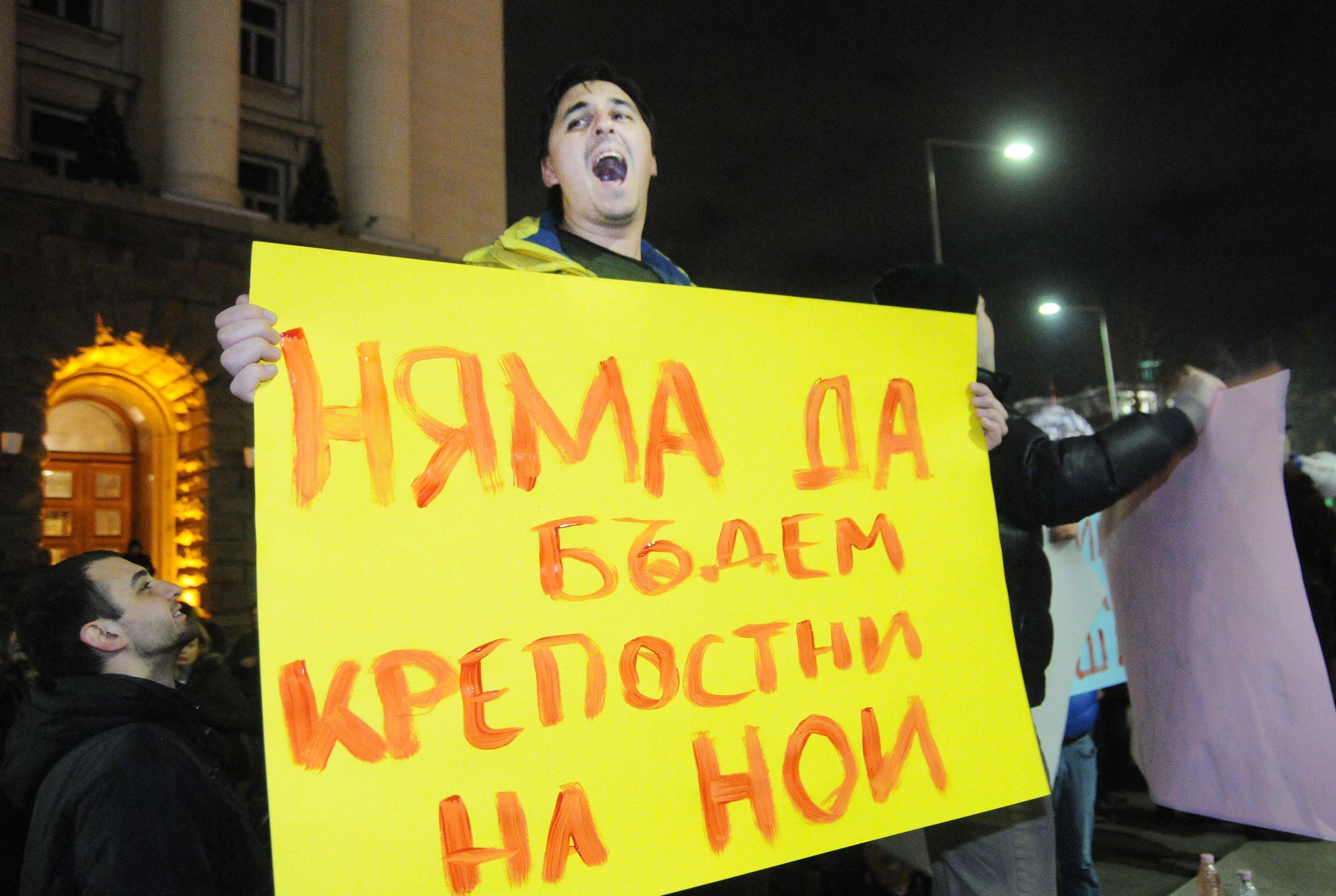 Недоволните скандират "Мафия!" и "Искаме си пенсиите", "Кой предложи-който пита", "Кой-кой-кой?". Те държат плакати, на които пише "Долу ръцете от пенсиите", "Не искаме да сме крепостни на НОИ" и др.