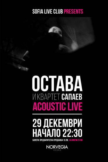 Акустичният проект на „Остава" с музикантите от „Сапаев" стартира преди година и след няколко успешни прояви пред публика, момчетата решиха да направят последния си концерт за годината именно в Sofia Live Club, за да могат феновете цялостно да се насладят на изпълненията им, благодарение на изключителния звук и интимната атмосфера на клуба.