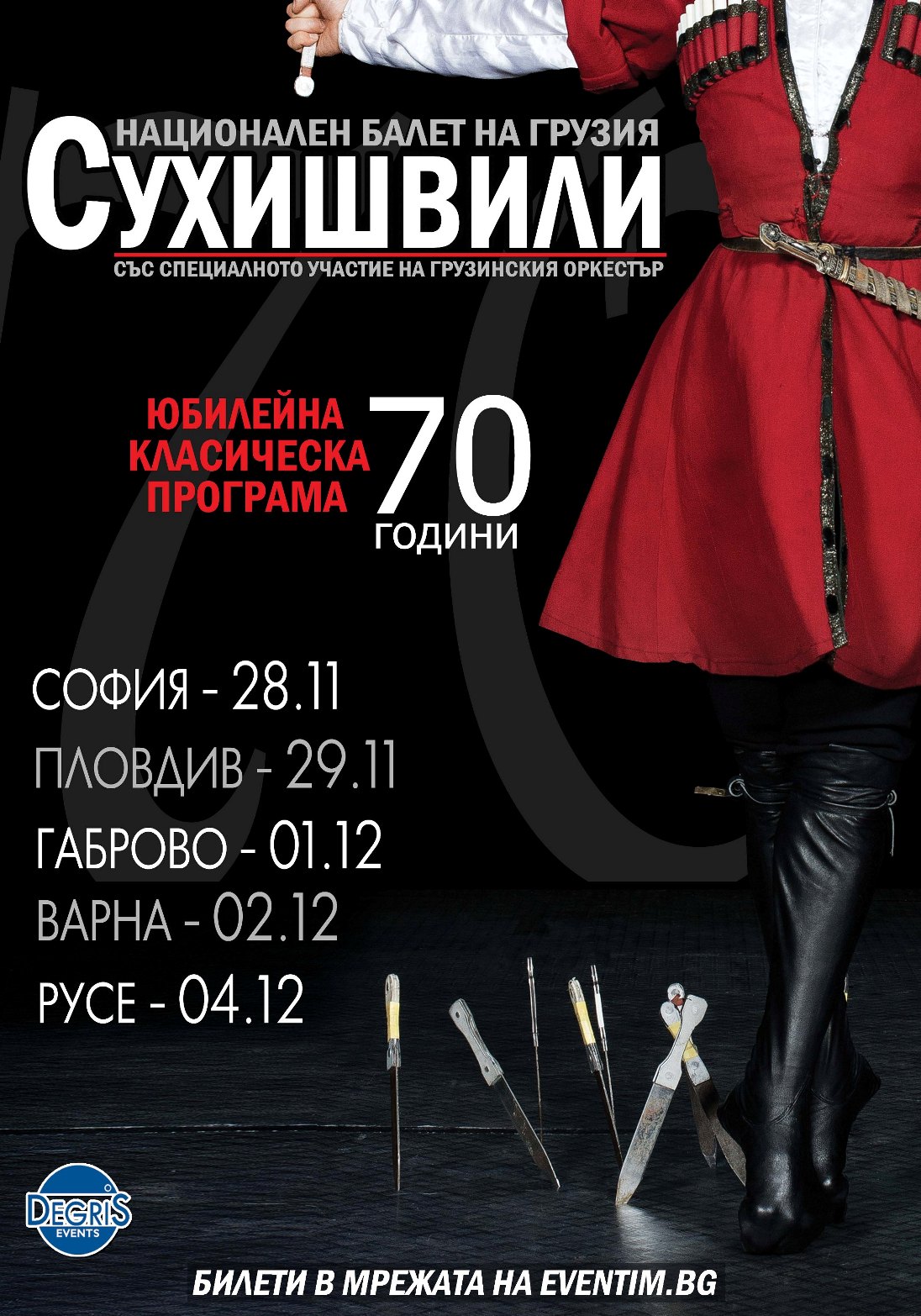 /КРОСС/ Световната сензация - Национален Балет на Грузия „Сухишвили", със специалното участие на Грузинския Оркестър - на турне в България с "Юбилейна класическа програма 70 години Сухишвили", 120 минути взривяваща енергия.