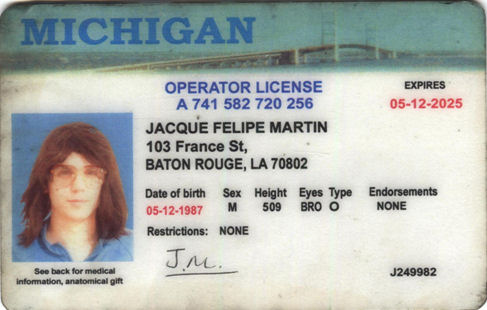 Приложение 1: Копие от свидетелство на управление на МПС на Жак Мартен и снимка на лицето от 18 юли 2012