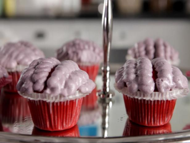 12. Всяко от кексчетата украсете като с шприца оформяте вълнообразни линии, наподобяващи мозък, така, както е показано на снимката.