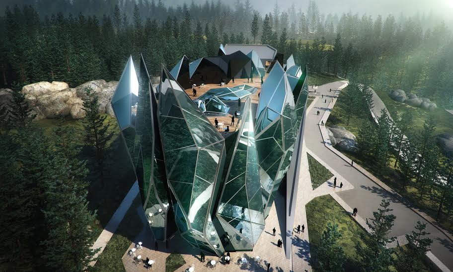 Концепцията, заложена в проекта следва същите природни принципи. Изградена е функционално-съобразена вътрешна структура, остенена с кристални форми, съдържащи ребра, рогове и стени. Кристалните форми са врязани в плътен обем, който напомня на характерните за района каменни реки.