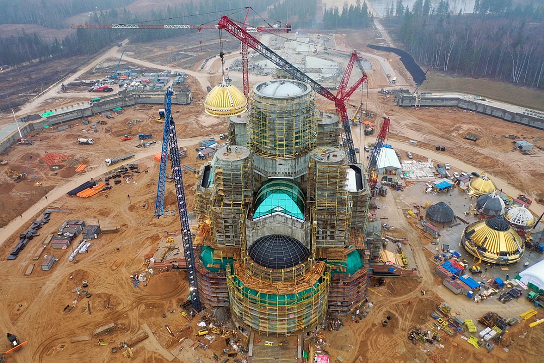 В близко време специалистите от Военностроителния комплекс на руското министерство на отбраната ще монтират три идентични купола на храма, още един на камбанарията и един в централната част на храма – с маса около 80 тона.