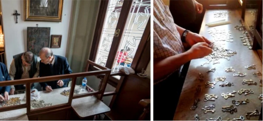 След това с тези ключове трябва да отидете до иконите, които са много тук и почти всички са заключени зад дървени шкафове. Тези шкафове се отварят с помощта на ключовете. През цялото време трябва да се молите или просто да говорите и да мислите за най-желаното от вас.
