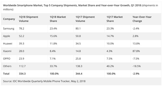 През тази година Huawei лансира новите модели от серия P20, които представляват съчетание от най-висок клас между красив дизайн и мощни технологии. Само за 30 дни след световната премиера на P20 и P20 Pro на 27 март в Париж, продадените бройки от серията P20 в Централна и Източна Европа, и Скандинавските страни, надскочиха 100 000, което представлява 17 пъти нарастване на продажбите спрямо предишния флагман на P серията - P10 Plus. Със своята иновативна тройна Leica камера, атрактивен twilight цвят и параметри с изкуствен интелект, гамата P20 вече се превърна в световна сензация. Според IDC глобалният пазарен дял на компанията е нараснал с 13.8% до 11.7%, което означава трето място в света през първото тримесечие на 2018 година.