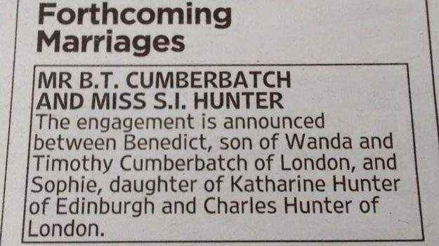 /КРОСС/ Известните свободни мъже във Великобритания станаха с един по-малко. Днес от рекламите във вестник Times стана ясно, че британският актьор Бенедикт Къмбърбач се е сгодил за приятелката си Софи Хънтър.