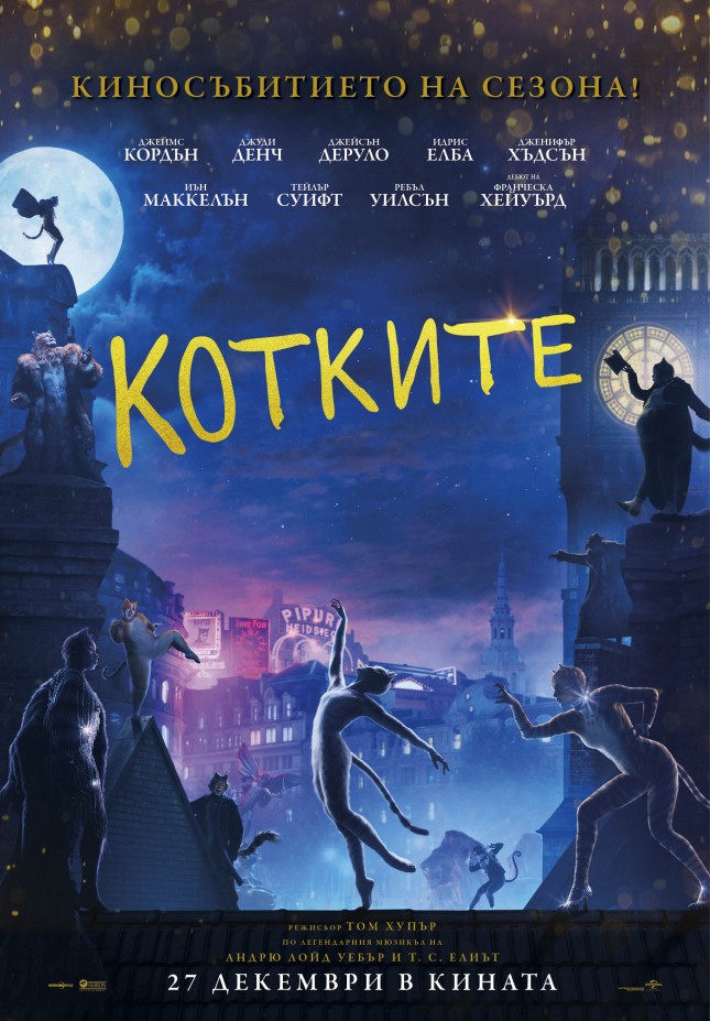 Нотките на драматизъм се преплитат с хумор, а царственият дух се сблъсква с несправедливата реалност. Всички тези емоции ни представя един забележителен актьорски състав в лицето на Джуди Денч, Идрис Елба, Тейлър Суифт, Иън Маккелън, Дженифър Хъдсън, Рей Уинстоун, Джеймс Кордън, Джейсън Деруло и много други брилянтни артисти.