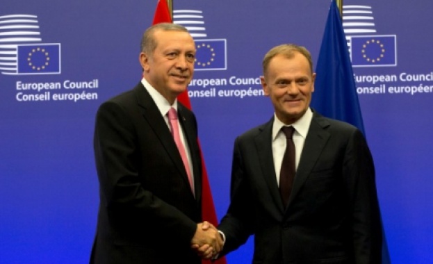 Туск каза, че с Ердоган са обсъдили европейската финансова помощ, управлението на границите, борбата с трафика на хора и визовата либерализация.