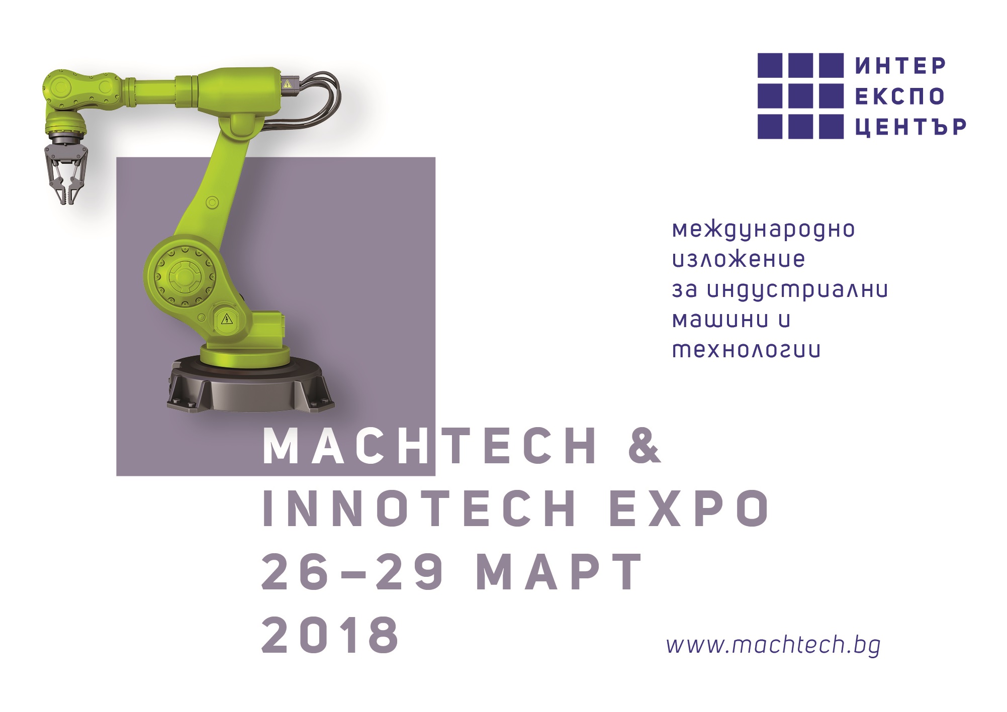 От 26-и до 29-и март в Интер Експо Център ще се проведе единственото специализирано изложение в България за машини и технологии за металообработка - MachTech & InnoTech 2018. На площ от над 7500 кв.м в 3 зали ще бъдат представени 150 водещи световни компании от сектора. Тазгодишното издание на изложението отчита силно международно участие и устойчив ръст от 40%. Така освен изложители от България, ще видим и едни от най-големите производители на машини и инструментална екипировка от Полша, Унгария, Румъния, Турция, Швеция, Италия и Китай.