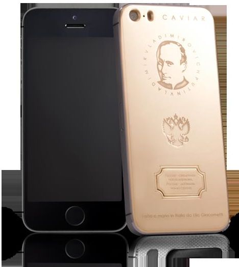 /КРОСС/ Италиански бижутери от Caviar разработиха уникален аксесоар за заможните руснаци - златен iPhone 5S, гравиран с портрета на държавния глава Владимир Путин и първите строфи от химна на Русия.