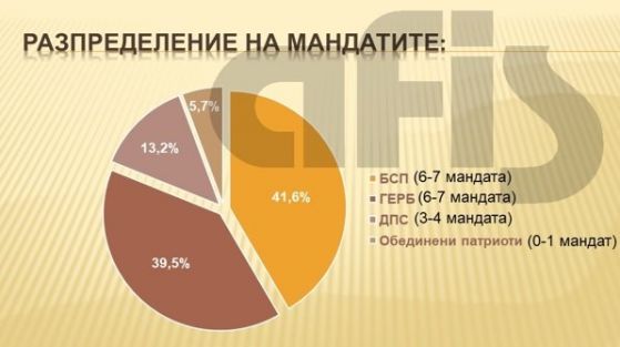 При цялата условност на изчислението 17-те мандата за България биха се разпределили по следния начин: