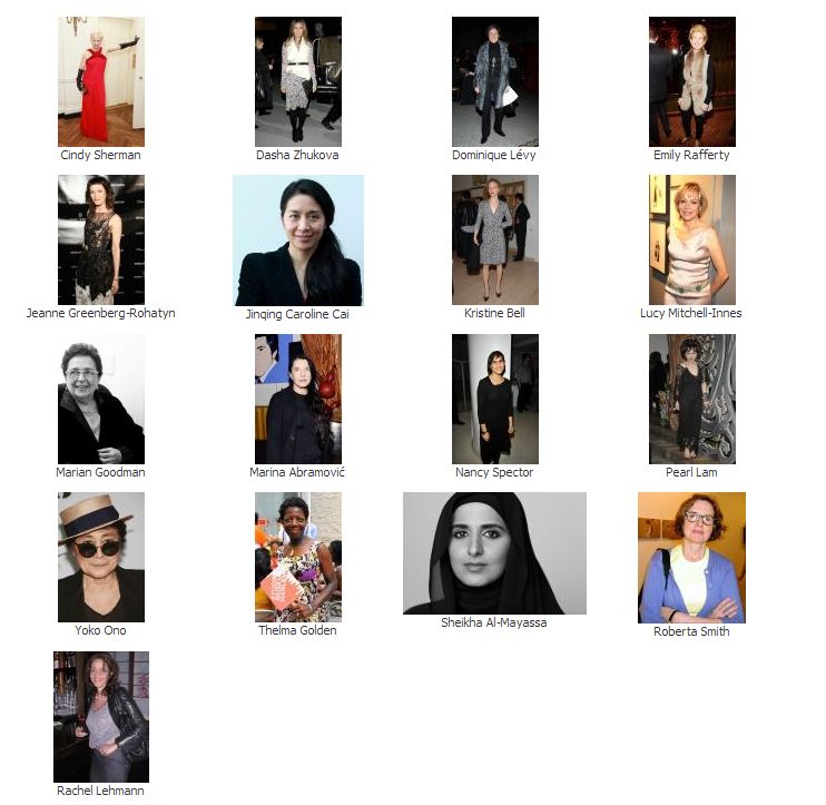 /КРОСС/ Изданието Аrtnet.com обяви имената на най-влиятелните жени на световната арт сцена. В публикацията се обръща внимание на факта, че през последните години тенденциите в тази област, доминирана през вековете от мъже, започнаха да се променят осезаемо.