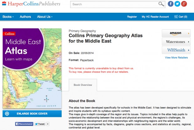 HarperCollins поднесе извинения за „пропуска" на фейсбук-страницата си. Но филиалът „Колинс Бартоломю", отговорен за картографията, даде смущаващо оправдание: показването на Израел щяло да бъде „неприемливо" за клиентите в Близкия Изток. Следователно, пропускът бил съзнателен заради местните бизнес интереси.