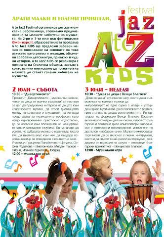 Подробности за детската програма, артистите и новости около А to JazZ ви очакват на официалната Фейсбук страница и сайта на фестивала.