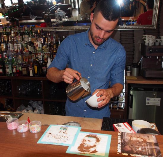 /КРОСС/ В навечерието на 3 март, образите на Левски и Ботев, Шипка и българското знаме рисува в чаша с кафе барманът Владимир Стоев. Всичко това се изографисва с шоколад на прах и по този начин поздравява клиентите си, съобщава БГНЕС.