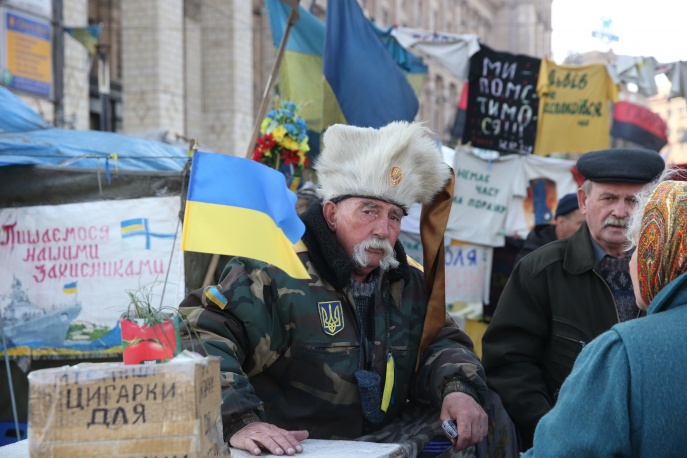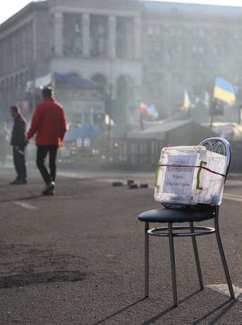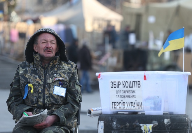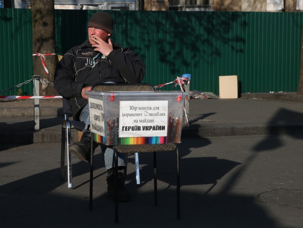 /КРОСС/ На площада на Независимостта в Киев, въпреки смяната на властта, все така си остава палатковият лагер на протестиращите. През последните месеци площадът се превърна в център за политически и обществен живот. Тези дни, така наречената «Рада на сотните на Майдана», която се състои от ръководителите на формированията, създадени по време на противопоставянето на органите на реда, въведе «комендантски час» на площада. За обезпечаването на своите нужди, обитателите на палатковия лагер са организирали акции за набиране на средства.