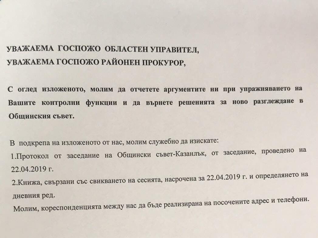 „Предвид факта, че не е спазена процедурата за свикване на заседание на Общински съвет-Казанлък, нито като редовно, нито като извънредно, считаме, че взетите от Общинския съвет в Казанлък решения не могат да породят правни последици", подчертават от левицата.