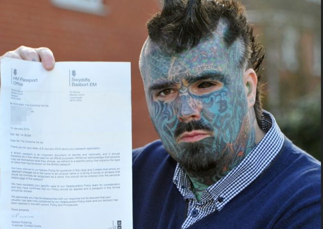 /КРОСС/ Властите във Великобритания отказаха паспорт на най-татиурания британец. Мъжът, който няколко пъти е сменял името си и сега е известен като Боди Арт, е искал този път да се прекръсти на Кралят на татуировките, пише The Daily Mail.
