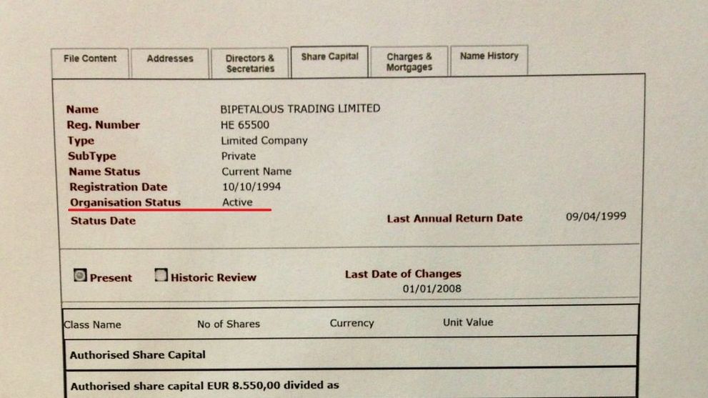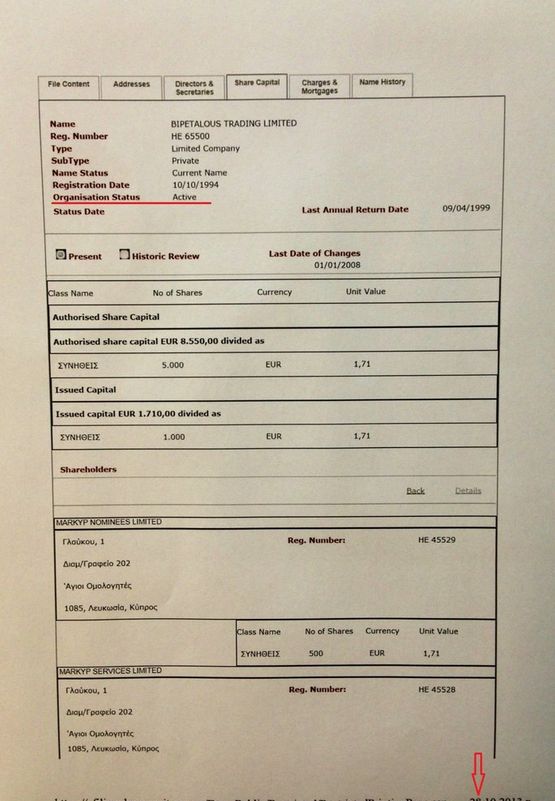 Информацията обаче не съвпада с онова, което се съдържа във Фирмения регистър на Кипър.