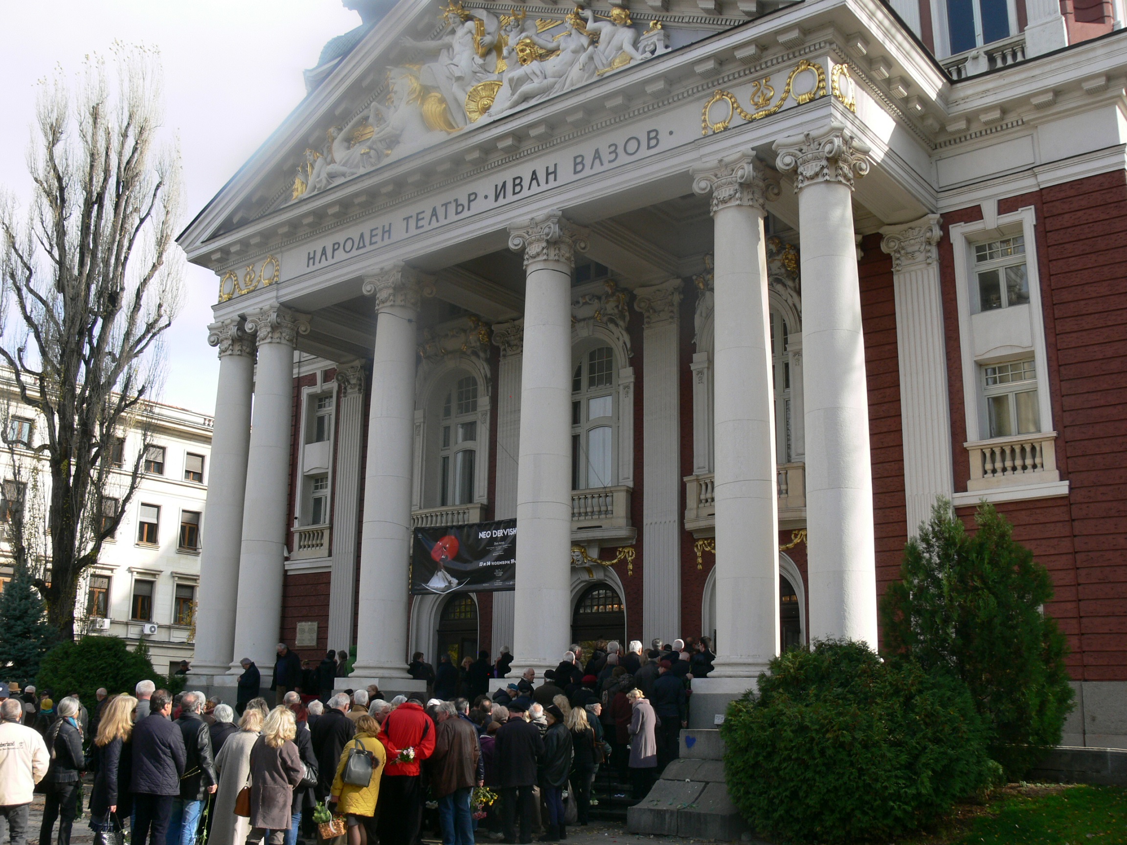 Опечалените приятели и почитатели на Бисер Киров се събраха пред сградата на Народен театър "Иван Вазов". Хората влизаха във фоайето, за да оставят цветя и отдадат последна почит на естрадната ни легенда.