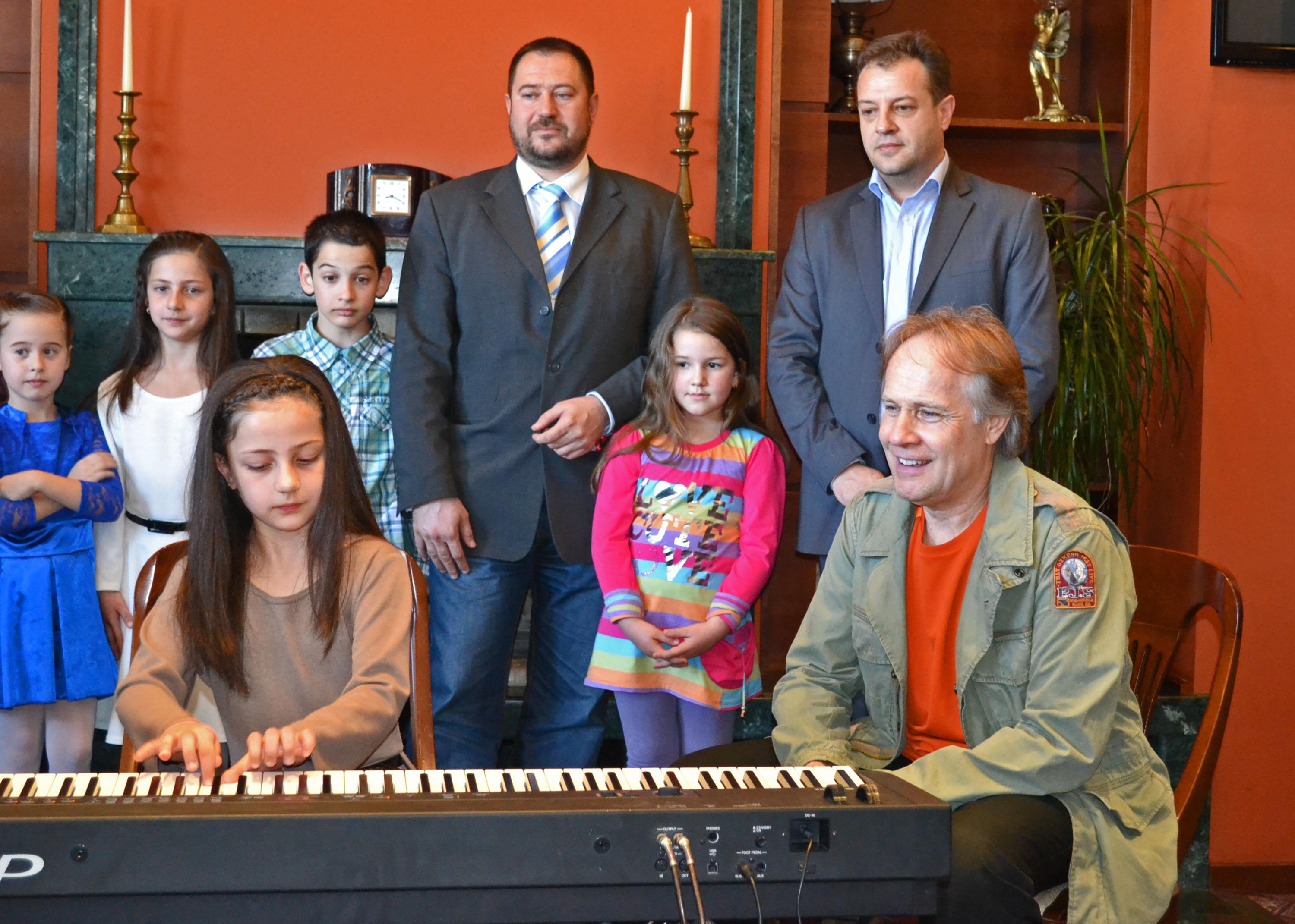 Велико Търново /КРОСС/ Ричард Клайдерман изнесе открит урок по пиано за деца от Велико Търново. Кметът на Старата столица Даниел Панов посрещна маестрото, който ще изнесе концерт по повод празника на града.