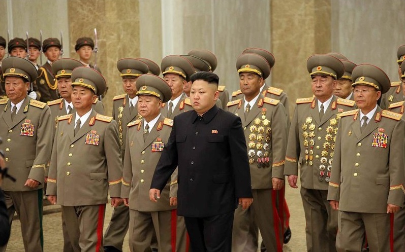 На официална церемония настоящият върховен лидер на страната Ким Чен Ун отдаде почит на дядо си Ким Ир Сен, управлявал от 1948 до 1994 г., и на баща си Ким Чен Ир, когото наследи след смъртта му през 2011 г, предаде Ройтерс.
