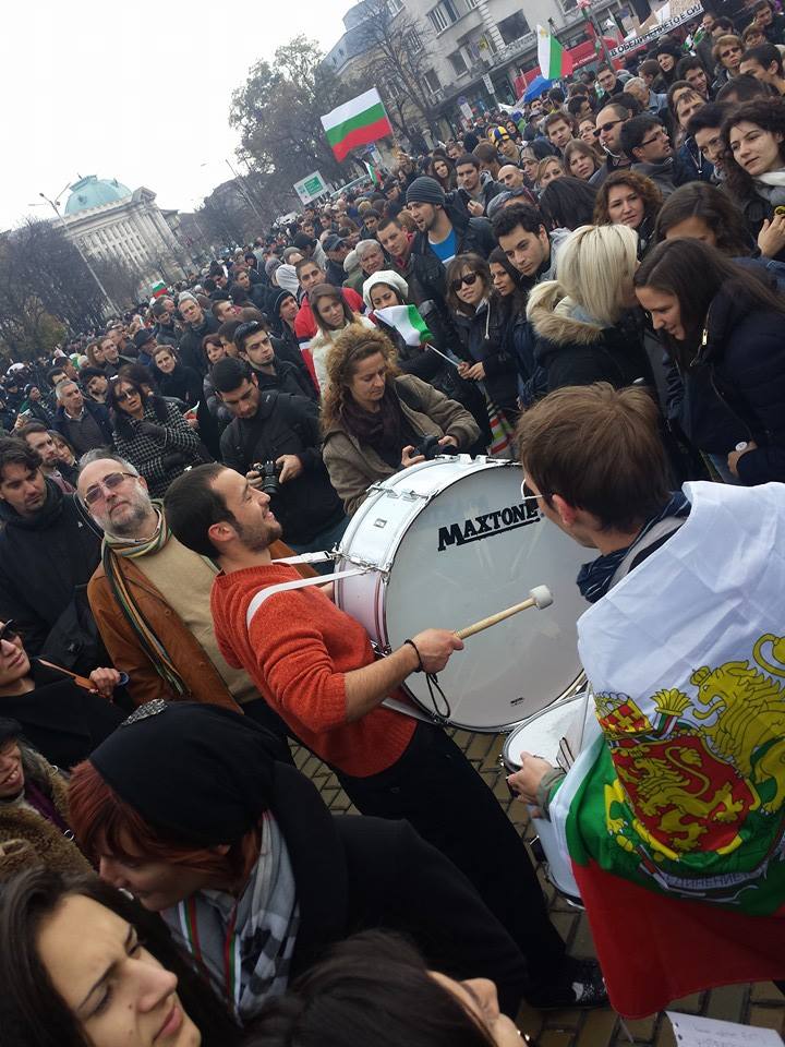 /КРОСС/ Протести и шествия блокираха центъра на столицата. На жълтите павета около парламента се събраха синдикалисти от КНСБ, студенти от Софийския университет, таксиметрови шофьори и неангажирани с определена организация, но подкрепящи протестите граждани. Пред Президентството пък защитници на правителството на Пламен Орешарски и „нецензурираните" сложиха контра на протестите пред НС.
