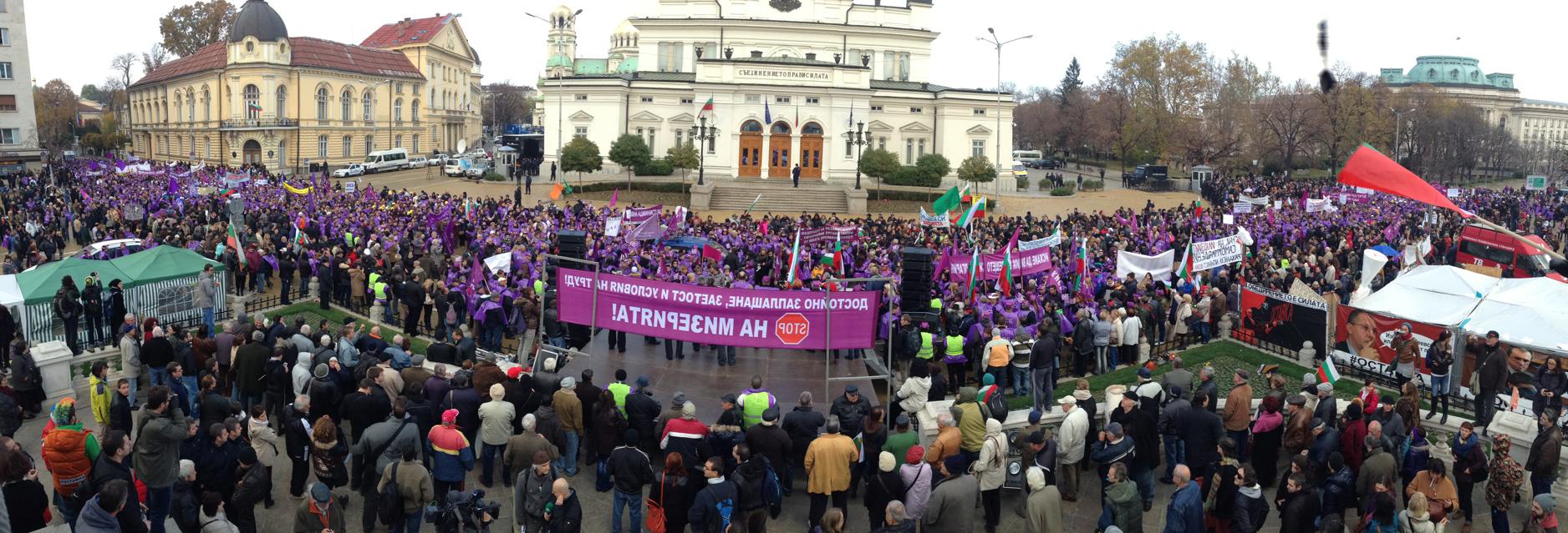 За разлика от протестиращите против управляващите, синдикатът призова властимащите да се вземат в ръце, за да не ги вземат хората от улицата, да увеличат заплатите на работещите, да защитят правата им и да спрат мизерията им, в която живеят българите.