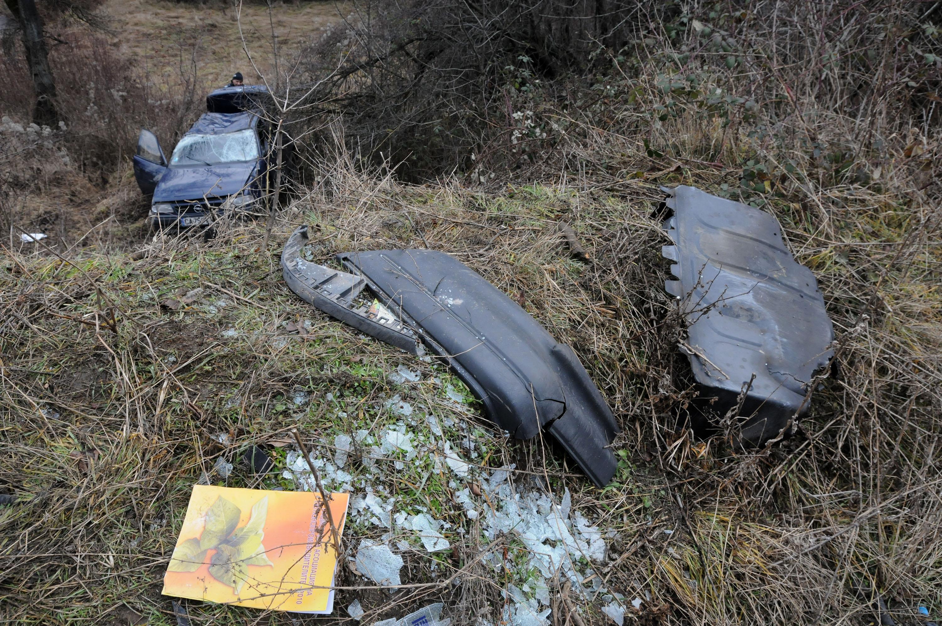 Колата се е ударила в насипа, но не се е спряла и се е превъртяла в дерето. При инцидента са пострадали и тримата пътници - двама мъже и една жена.