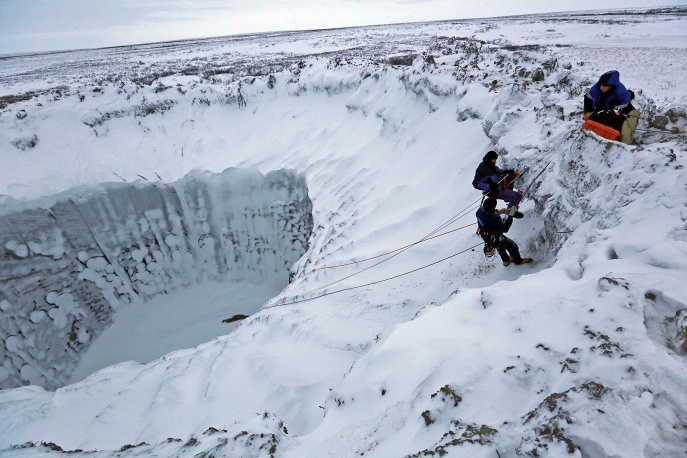 Учени се спуснаха в гигантския кратер на Ямалския полуостров