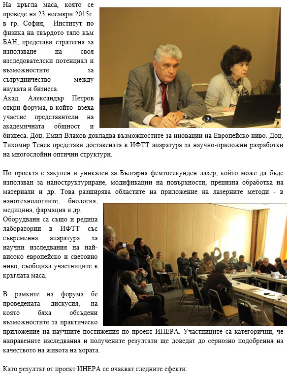 Кръгла маса на тема “НАУКА/БИЗНЕС - Стратегия за използване изследователския потенциал на Института по физика на твърдото тяло”