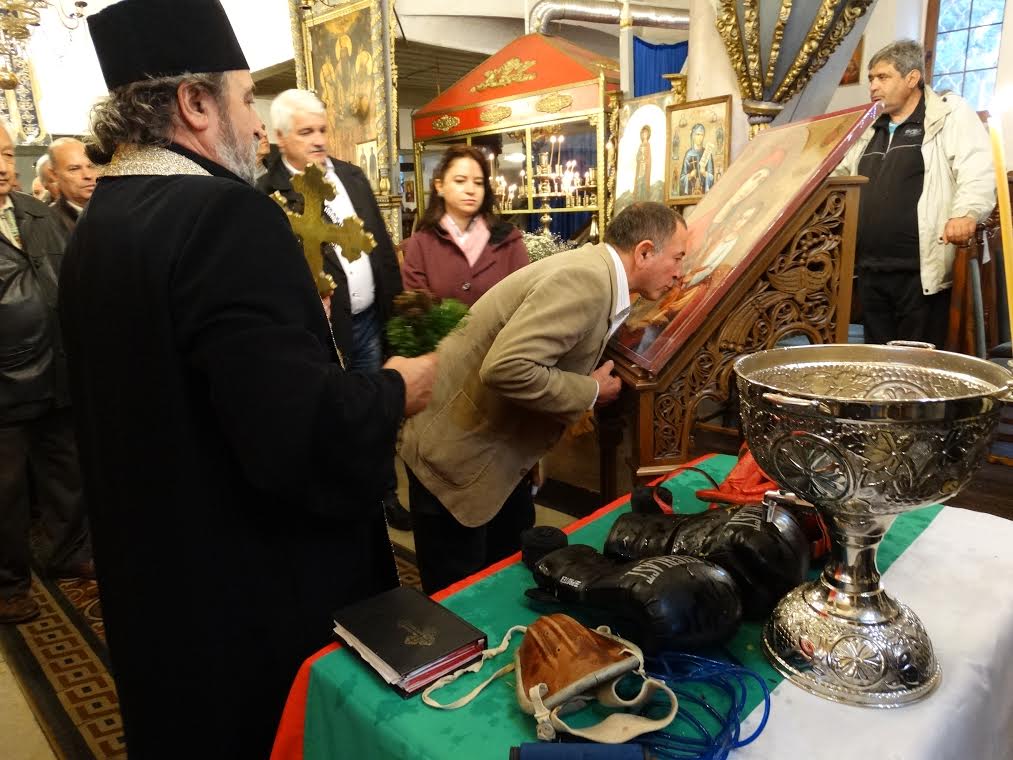 За молебена в асеновградския храм се събраха много спортисти, треньори, граждани, представители на различни спортни организации и военнослужещи от местното военно поделение. Кубрат Пулев ще победи на срещата с Кличко-това предрече след службата архиерейският наместник свещеноиконом Йордан Георгиев. А множеството, което се бе събрало в църквата, целуна иконата на Богородица с молитва за победа и на излизане докосваха ръкавиците на боксьора за късмет.
