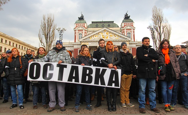 Около час преди началното на церемонията пред Народния театър се събраха известни актьори, които с бяла лента на едната си ръка бяха готови за протест, вместо за празник. Те носеха и надписи „Оставка". „Празникът на театъра е нещо велико за всички, които се занимават с това изкуство. Просто бихме искали това нещо да бъде ценно и за всички останали в нашата държава, защото мисля, че изкуството е това, което ще спаси духа на нацията. Затова сме тук, защото искаме да променят отношението си към културата в България", каза Параскева Джукелова, която също беше с бяла лента пред Народния театър. Според нея отношението най-вече на властимащите е като към „некакви хора, които са маргинали, които не се занимават с нещо, което е важно". „А според мен освен здравеопазването и пътищата е много ценно да се грижим за духовното израстване на хората в нашата държавата", каза тя.