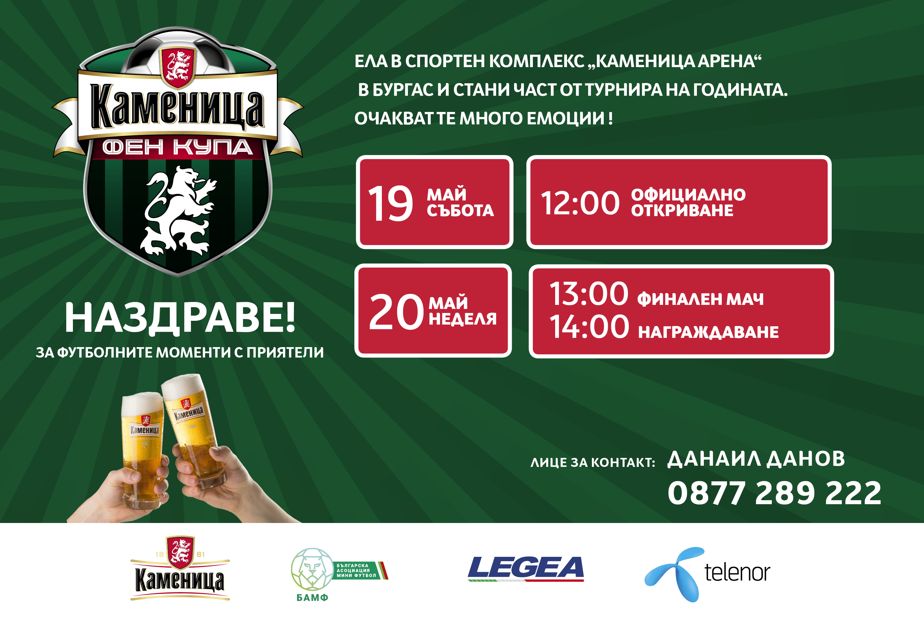 Френският капитан мореплавател Жак Кусто е казал: „След като веднъж ви омагьоса, морето ви държи в плен на чара си цял живот". Същото се отнася и за футбола - най-великата игра! В Бургас и Ямбол живеят много фенове, които носят футболния чар в сърцата си, а най-доброто място за тях да изразят и споделят тази своя страст е на терена на най-големия и вълнуващ футболен турнир за приятели в България - Каменица Фен Купа 2018. Наздраве за тези фенове и за предстоящия четвърти регионален полуфинал на Фен Купа 2018, който ще се състои този уикенд на игрищата в спортен комплекс „Каменица Арена" в Бургас.