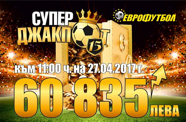 СУПЕРДЖАКПОТЪТ от 15 срещи достигна 60 835 лева към 11:00 ч. на 27.04.2017 г.