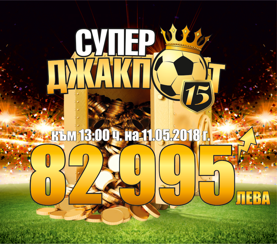 30-те срещи от МАКСГОЛ можете да намерите тук. Суперджакпот 15 към 12.30 часа на 11.05.2018 г. е на стойност 82 973 лева, а срещите от него можете да намерите тук. Натрупаната сума в Джакпота с 13 срещи е 8 852 лева, а мачовете, с които можете да играете за него, ще откриете тук.
