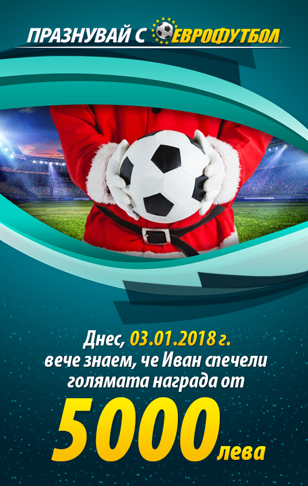 На 03.01.2018 г. се определиха и последните 60 х100 лева и 2 х 500 лева, както и големият победител, който си тръгва с 5000 лева! Той бе избран измежду всички, регистрирани в уеб страницата на „Еврофутбол" в периода на кампанията „Празнувай с „Еврофутбол"!