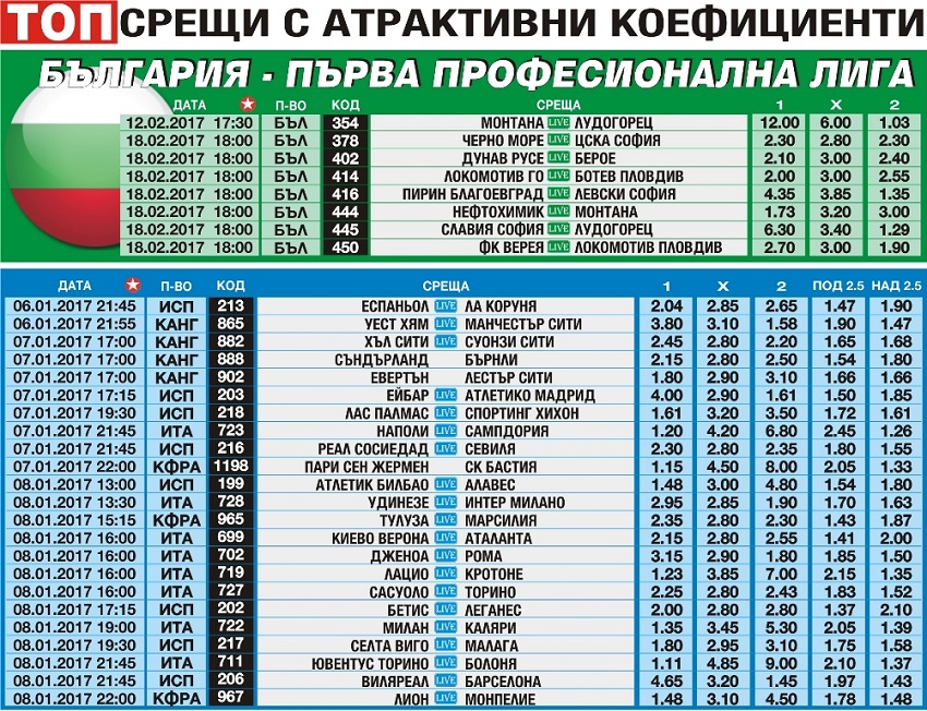 Българският букмейкър радва с хубави печалби своите клиенти, почитатели на Спортмакс. На 03.01 столичанин грабна общо 6 073,20 лева за комбинацията Точен резултат + първо полувреме/Краен изход + Секунда на 1-ви гол. Тогава ямболия си тръгна с 1 805,40 лева за Точен резултата + Първо полувреме/Краен изход. На 04.01 софиянец взе 2 932,20 лева за Точен резултат + Първо полувреме/Краен изход и Секунда на 1-ви гол. В четвъртък добричлия прибра 1 017,60 лева за Точен резултат + Секунда на 1-ви гол + Първи голмайстор, а хасковлия забогатя с 1 145,40 лева срещу 60 лева залог за Първо полувреме/Краен изход.