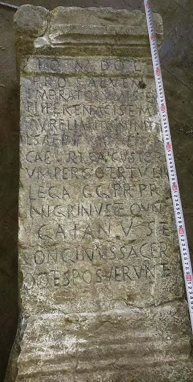 "На Юпитер Всеблаг Всемогъщ Долихен за здравето на императорите августи Л. Сепмтимий Север Пий Пертинакс и Марк Аврелий Антонин и на цезаря Л. Септимий Гета посветиха чрез августовия легат Гай Овиний Тертул жреците Нигрин, Квинт Гайан и Лонгин."