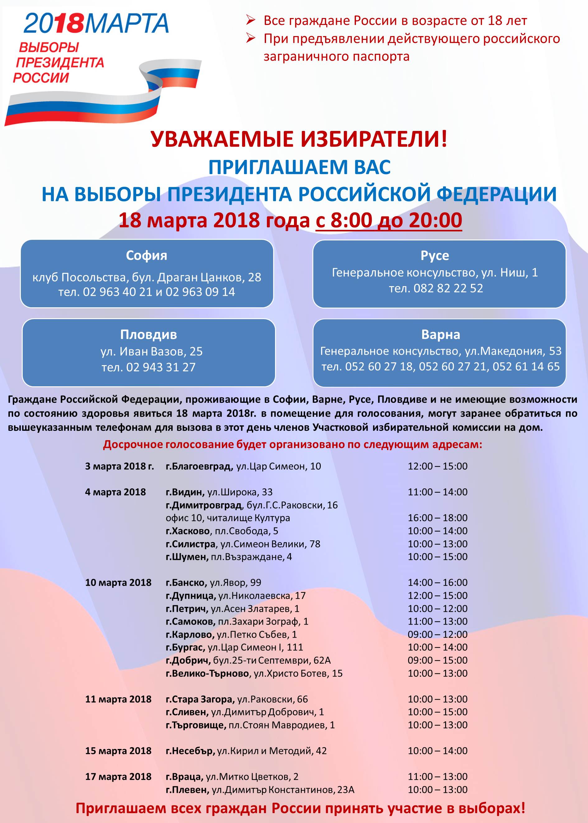 /КРОСС/ В общо 24 български града ще могат да гласуват руските граждани в България на предстоящите президентски избори в родината им на 18 март. Това съобщиха от посолството на Руската федерация в страната ни.